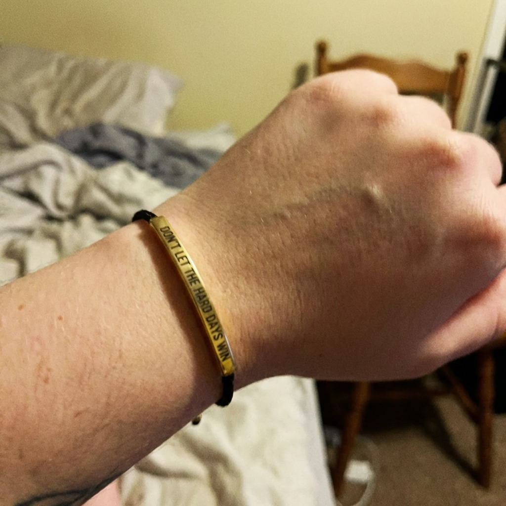Our "Don't Let The Hard Days Win" Bracelet is a daily reminder worn on the wrist that you're stronger than whatever you're facing right now. Minimalist, adjustable, and built to be worn every single day — because the hard days don't stop, and neither do you.